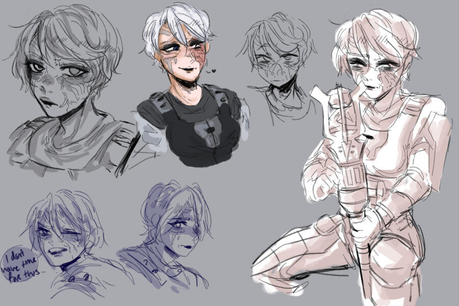 Scars / Tattoos: Grey Tribal Tattoos around her eyes, Tribal Tattoos along her right arm and side, Severe burn scar and perminant nerve damage along her entire left side.